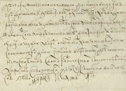 Приведем пример челобитной, поданной Федором Жирухиным в августе 1659 г.: «Государю архимариту Никону еже о Христе з братьею бьет челом Пречистые Богородицы и вас, государей, посадцкое жилчишко Федка Лукин. Жалоба, государь, мне на посадцкого жилца на Конана Филипова сына Чаплина. В нынешнем, государь, во 167-м году августа в день, будучи, государь, на монастыри, бранил он, Конан, меня, сироту, матерно и всякими неподобными речми, что, государь, иных речей немочно и в челобитную писать, и вором, государи, меня, сироту, называл. Умилостився, государь святый архимарит Никон еже о Христе з братьею, пожалуйте, государи, мне на его, Конана, свой начальнической сыск и управу, чтоб мне, сироте, от его Конановых поносных речей вконец не погинуть. Смилуйтеся, пожалуйте».