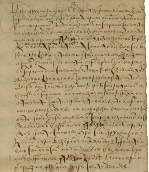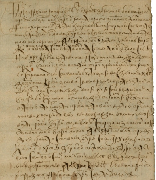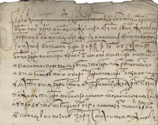 Процесс начинался с подачи истцом челобитной и списка свидетелей, которые назывались «ссылочными людьми» или «ссылками», то есть теми, на кого ссылается истец. Перед такой челобитной могла быть подана явочная челобитная или явка ‒ от слова «являть» (объявлять, заявлять), то есть как можно скорее зафиксировать факт совершения правонарушения или предупредить о чьих-либо преступных намерениях. Таких челобитных сохранилось в монастырском архиве довольно много. Их подавали тихвинские посадские люди, окрестные помещики и приезжие торговые люди. Чаще всего такая потребность возникала, когда человек находился далеко от места своей непосредственной подсудности. Например, в такую ситуацию попали монастырские – старец Мисаил, иеромонах Пахомий и слуги, когда направлялись в Москву и проезжали через поместье Никиты Шершавина – село с говорящим названием Потерпелово. Там на них напали (сын помещика Никита с товарищами), избили и ограбили. Явочные челобитные об этом были поданы воеводе в городе Кашине и в Антониев монастырь. У себя истцы оставили список (копию) челобитной с записями о том, кому она была подана.